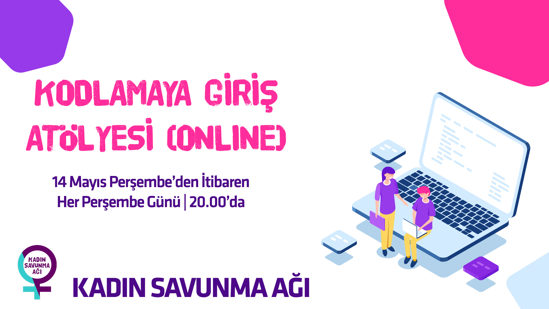 Kadın Yazılım Tasarım Kolektifi ve Kadın Savunma Ağı kadınlara ve kendini kadın olarak ifade edenlere yönelik online kodlama atölyesi başlatıyor. Atölyenin ilk dersi 14 Mayıs'ta yapılacak.